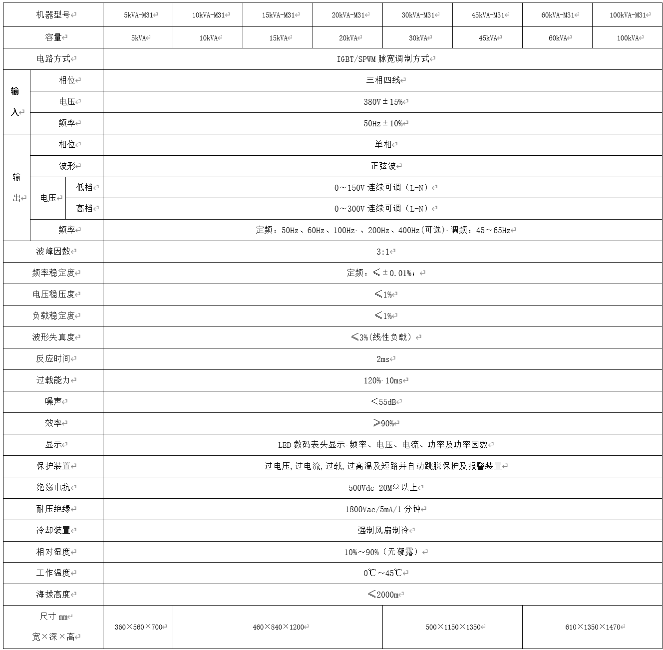 60Hz系列變頻電源三相輸入/單相輸出產(chǎn)品規(guī)格說明
