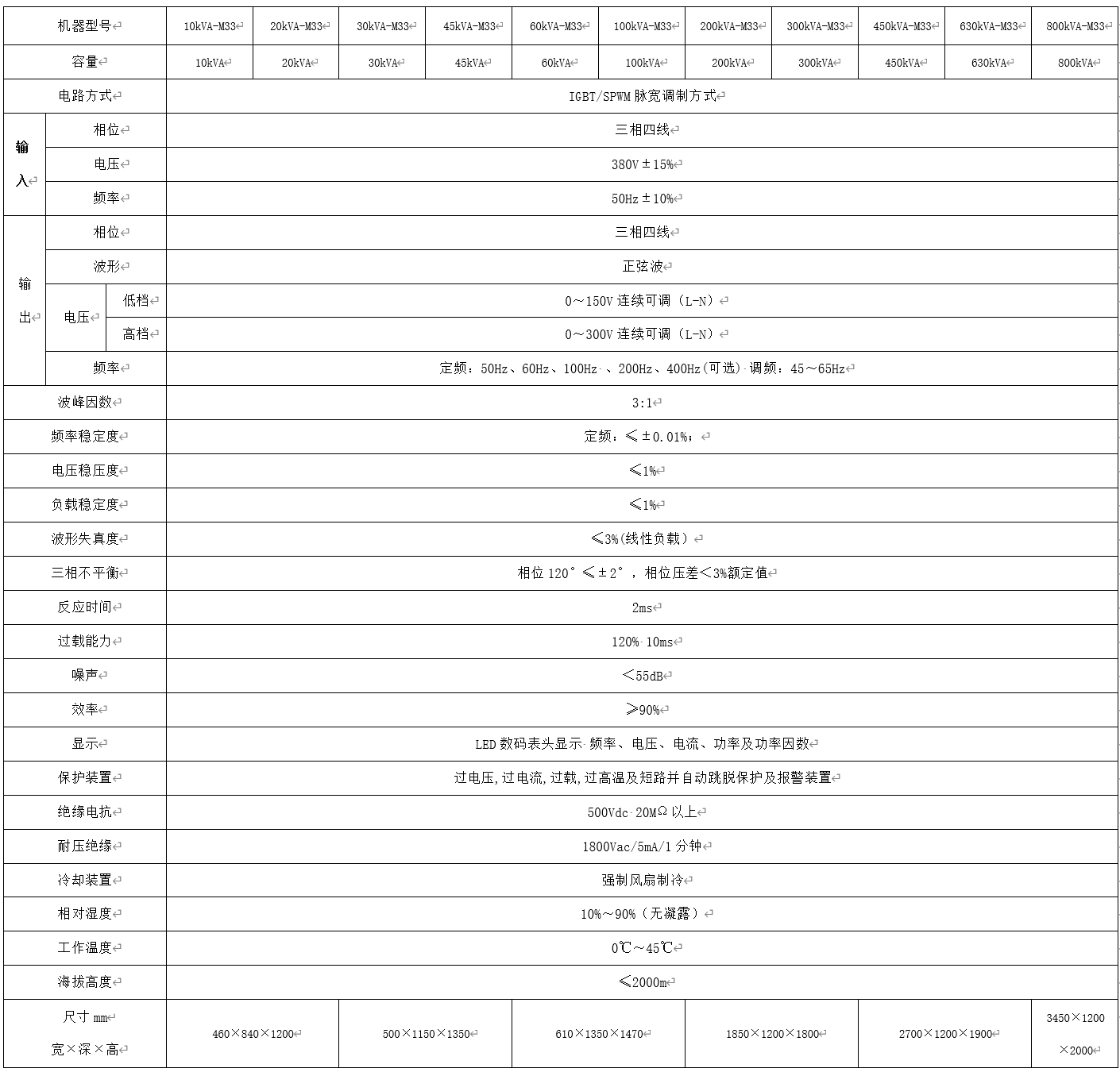 60Hz系列變頻電源三相輸入/三相輸出產(chǎn)品規(guī)格說明